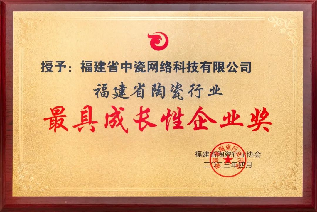 福建省陶瓷行業(yè)最具成長性企業(yè)獎,中瓷網(wǎng)絡(luò)再添新榮譽
